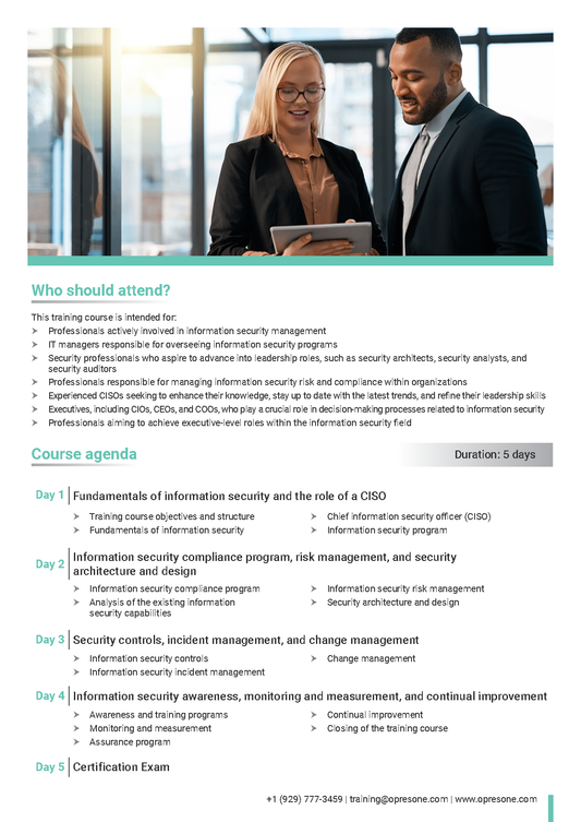 The skills you gain from our training programs translate directly into measurable benefits for your organization. By effectively managing risks, ensuring compliance, and maintaining operational continuity, you help safeguard your company’s assets, reputation, and bottom line. The return on investment (ROI) from your training is realized through cost savings, reduced downtime, enhanced productivity, and the ability to navigate crises with minimal impact.