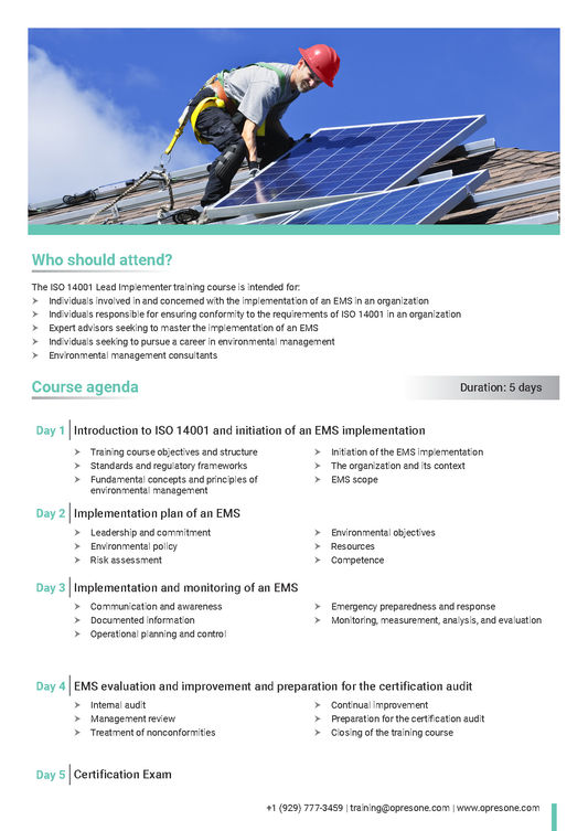 ISO 14001 Lead Implementer Certification Course